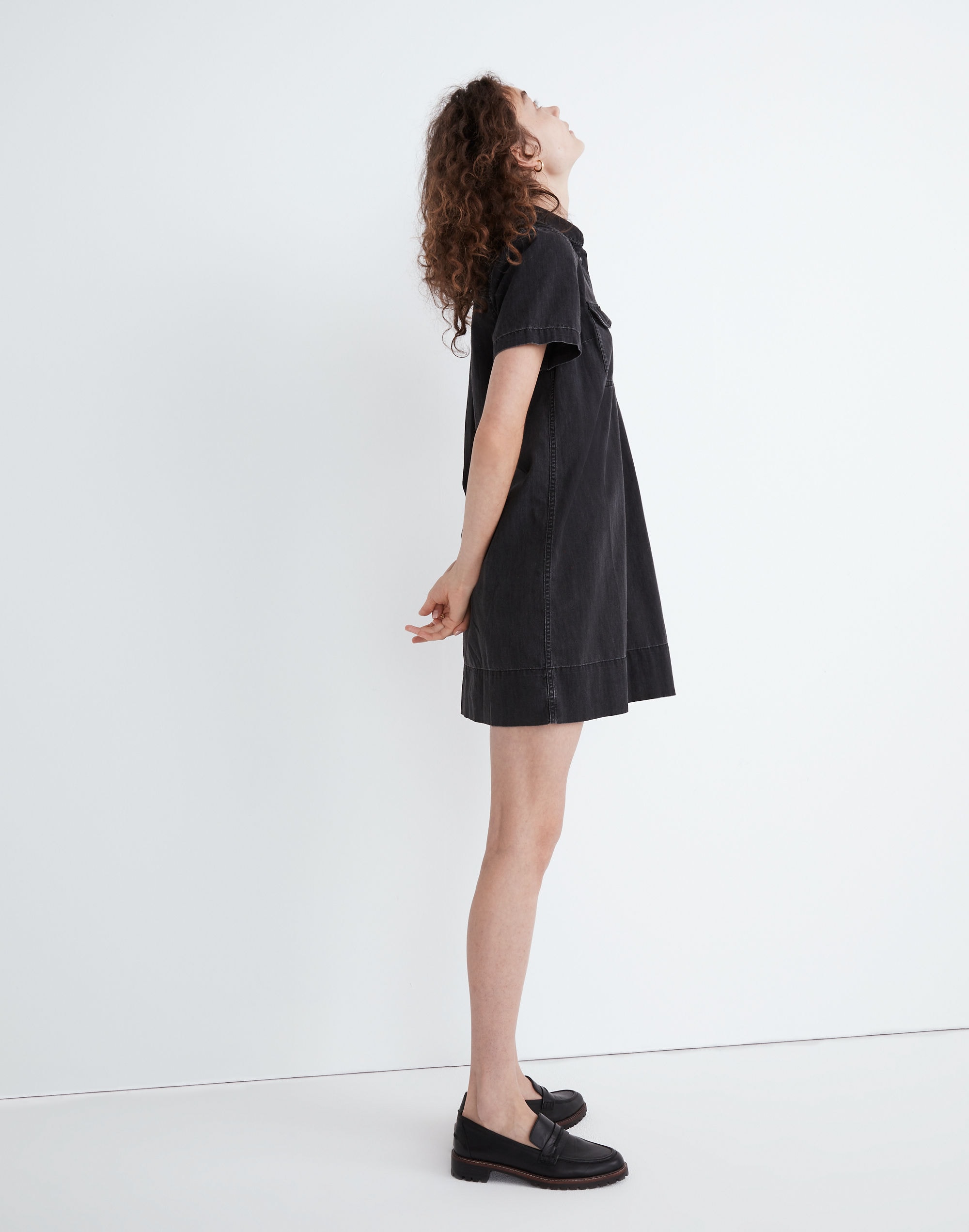 Denim Short Sleeve Popover Shirtdress In Lunar Wash